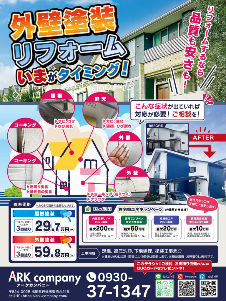 ARK Companyは、北九州市、行橋市を中心にリフォームや内装工事、外壁塗装など、幅広く対応する建設会社です。